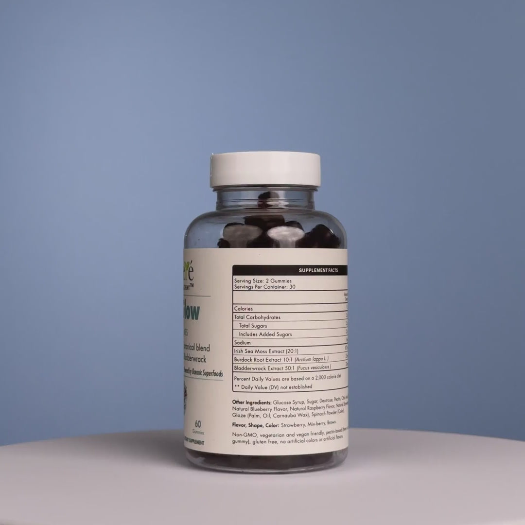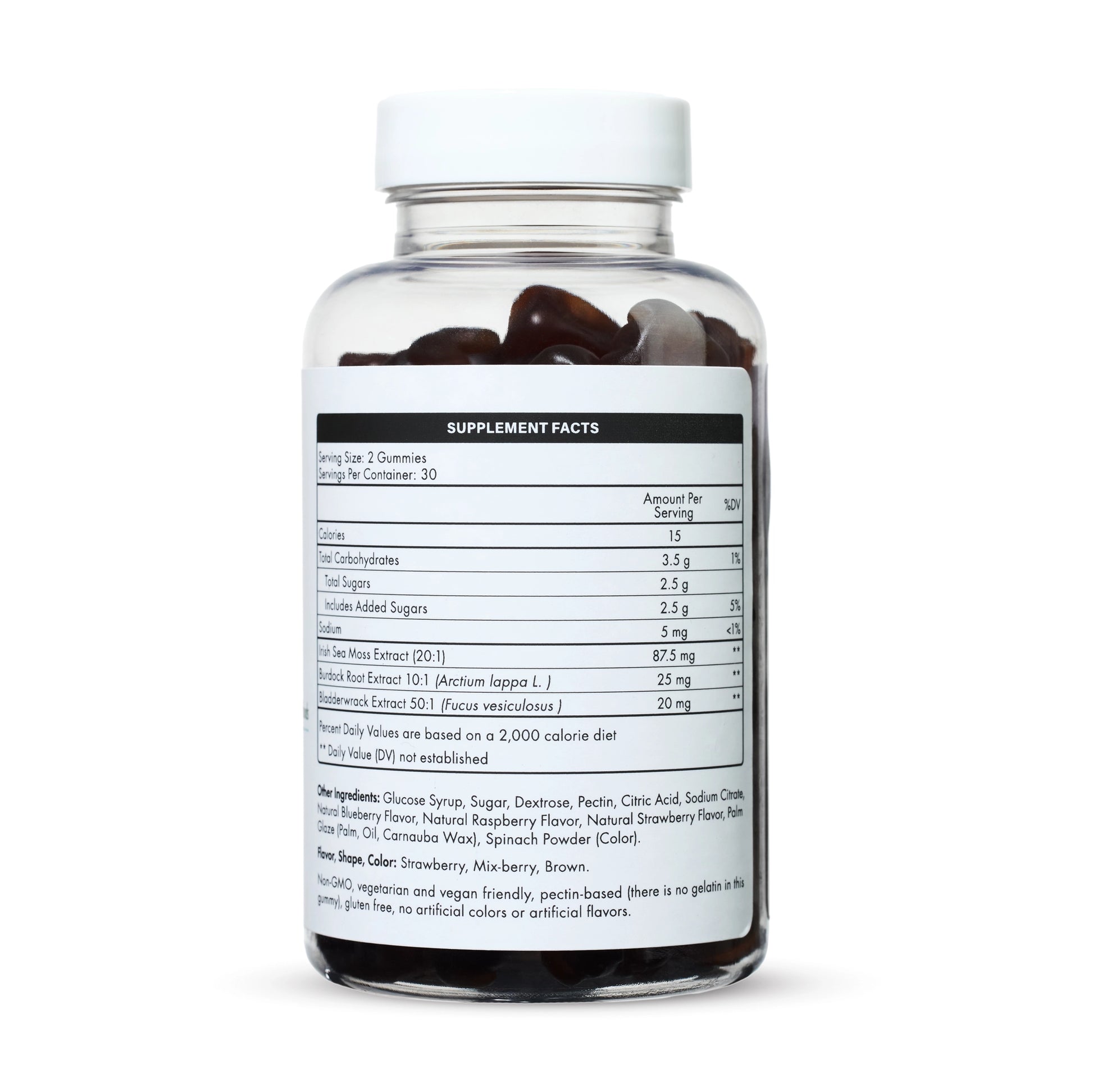 SeaGlow brings together the essence of Irish Sea Moss, Bladderwrack, and Burdock Root in a refreshing plant-based gummy — a simple ritual inspired by the ocean’s natural abundance.